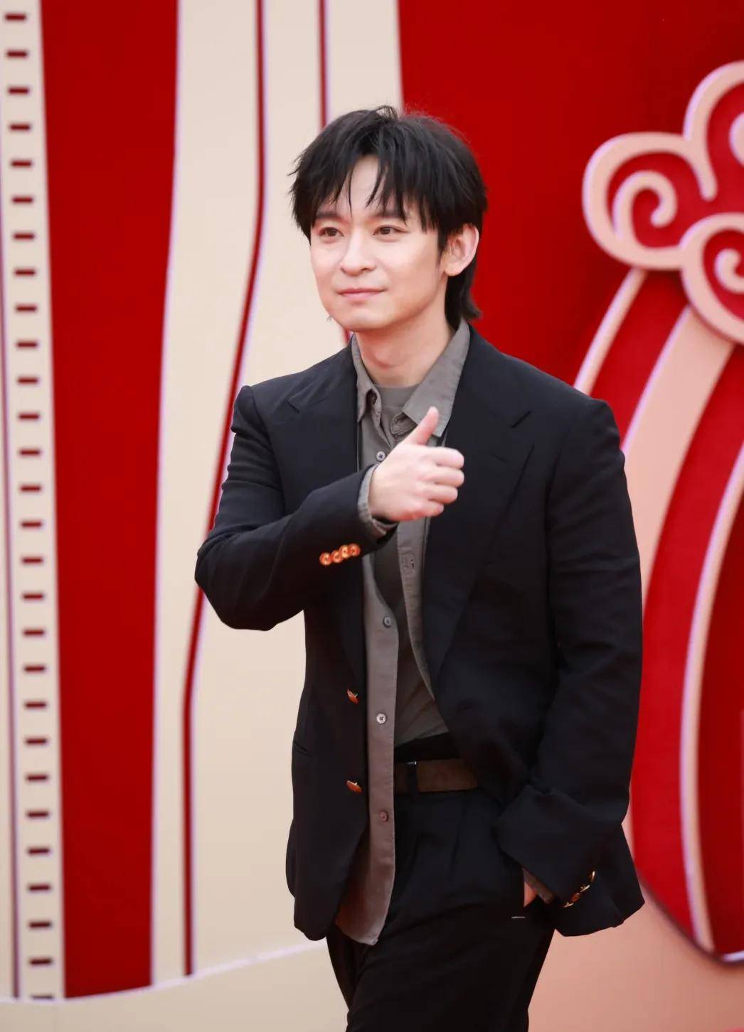 如今不仅当演员还当导演的董子健,穿的是灰色衬衫和黑色西装,越来越有幕后工作人员的感觉了。