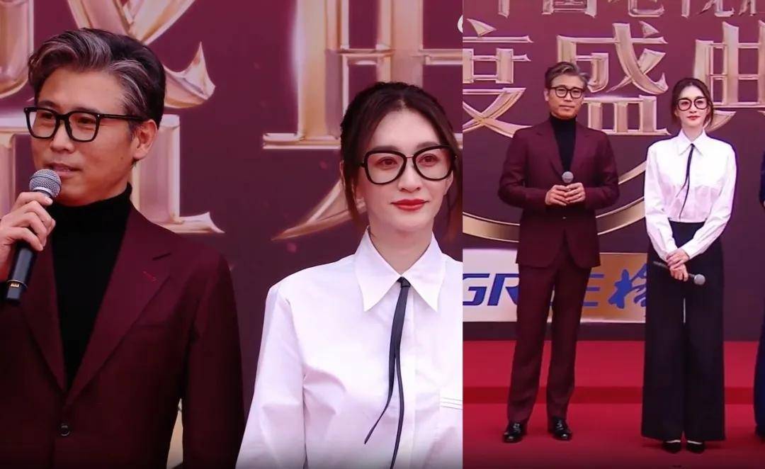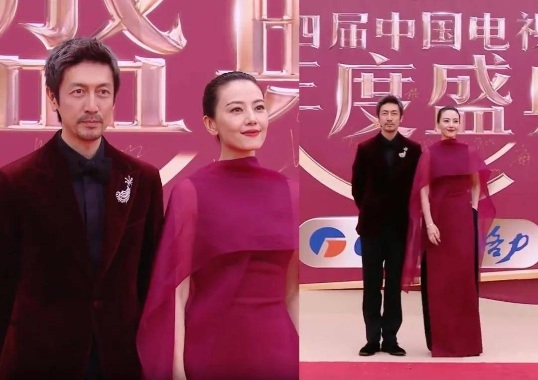 张鲁一和高圆圆默契地穿了红色系的礼服,张鲁一穿的是暗红色丝绒西装,高圆圆穿了酒红色和黑色拼接纱裙,两人的着装都很喜庆,仿佛是去参加晚辈婚礼的恩爱长辈。