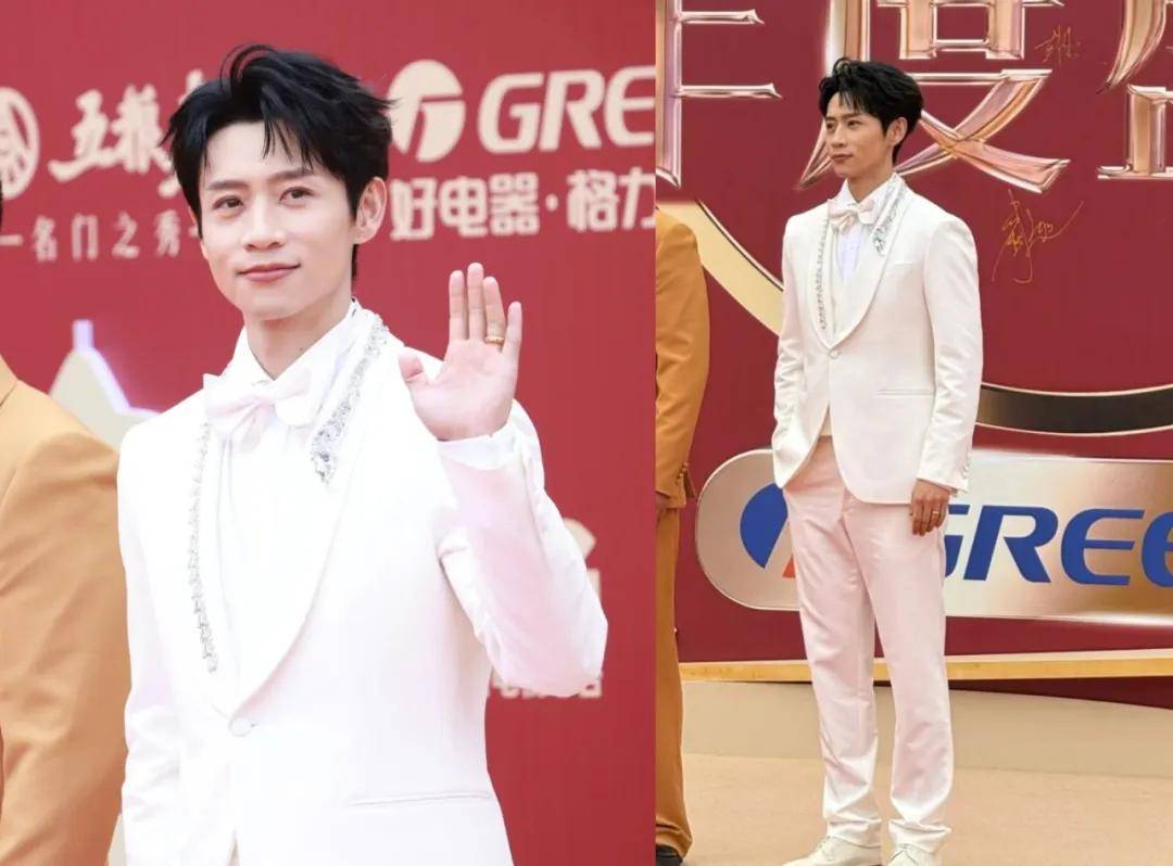 魏晨穿了一身白色西装,如果他跟孙千搭档走红毯的话,也许会更有新婚夫妻的感觉。