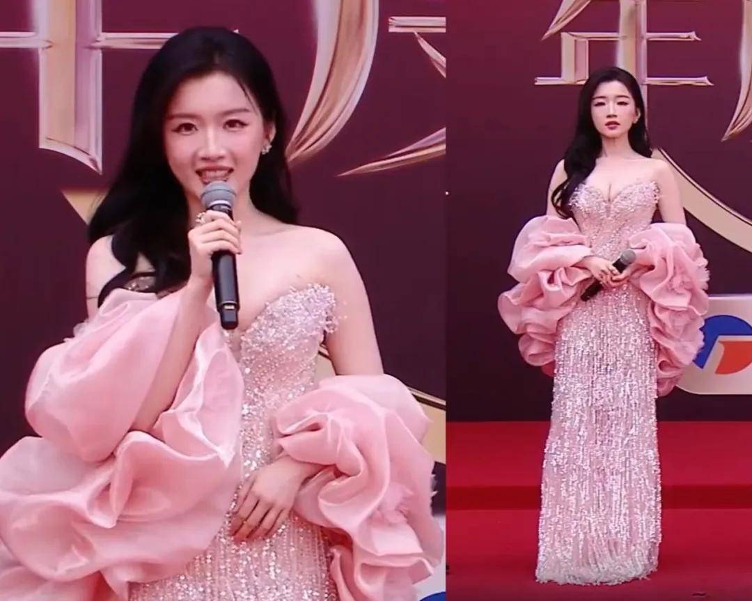 几年前曾被芒果力捧的李浩菲,刚出道时被说过像周冬雨,现在看来不是很像了。她穿了一条颇有年代感的礼服,仿佛在复刻多年前央视春晚主持人的造型,年纪轻轻打扮得很是成熟。