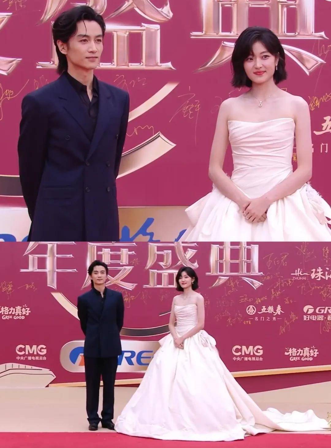 一般来说男明星穿黑色西装、女明星穿白色拖地长裙一起走红毯的话,多少都会有CP感,CP感强的话甚至会像婚礼现场的新郎和新娘,但神奇的是孙千和陈晓仅仅像幸福的新娘在婚礼舞台上跟不太熟的亲戚合照。